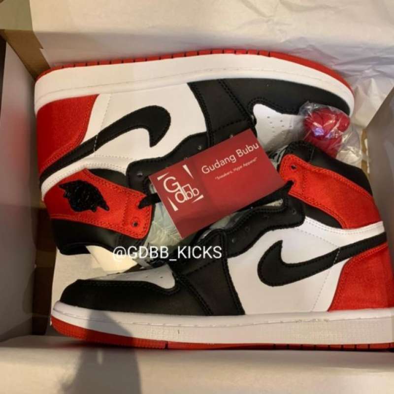 Jual Nike Air Jordan 1 Black Toe Satin - Black Red 6 di Seller Gudang Bubu - Kelapa Indah, Kota jordan 1 black toe red