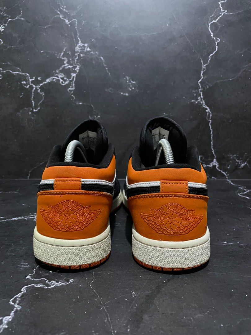 Sepatu AJ1 Nike Air Jordan 1 Low Retro Black Toe Orange size 42 insole 26,5cm, Fesyen Pria aj1 black and orange