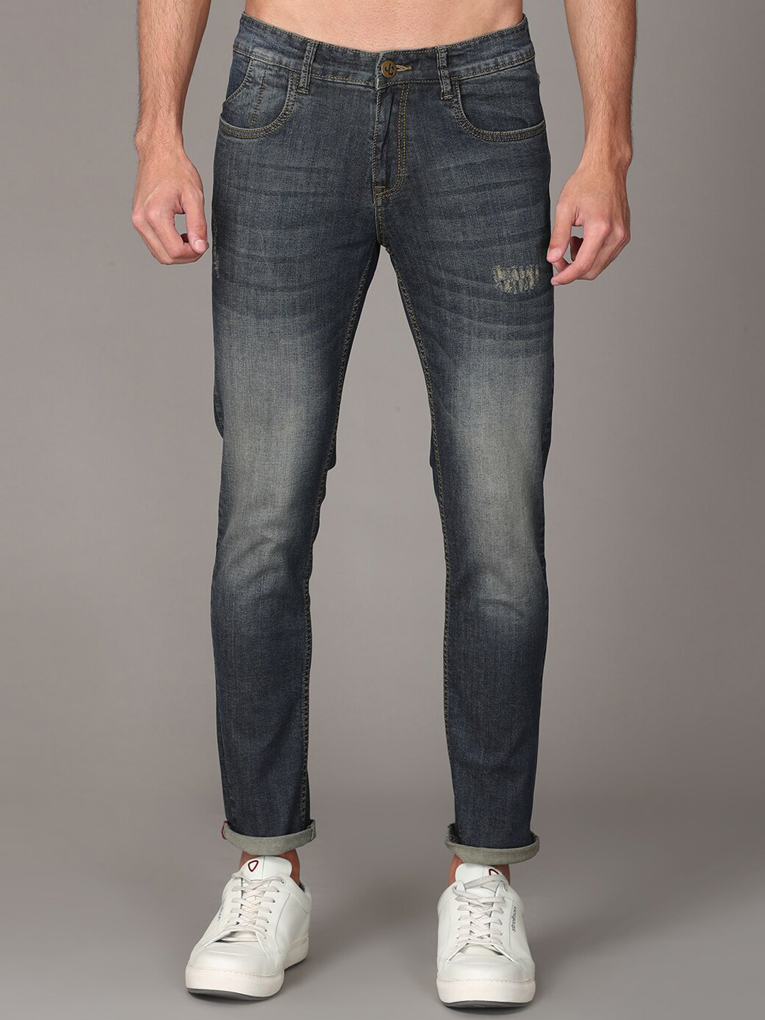 Buy Jean Cafe Men Navy Blue Slim Fit Mildly Distressed Heavy Fade Organic Cotton Jeans - Jeans blue jean retro 6