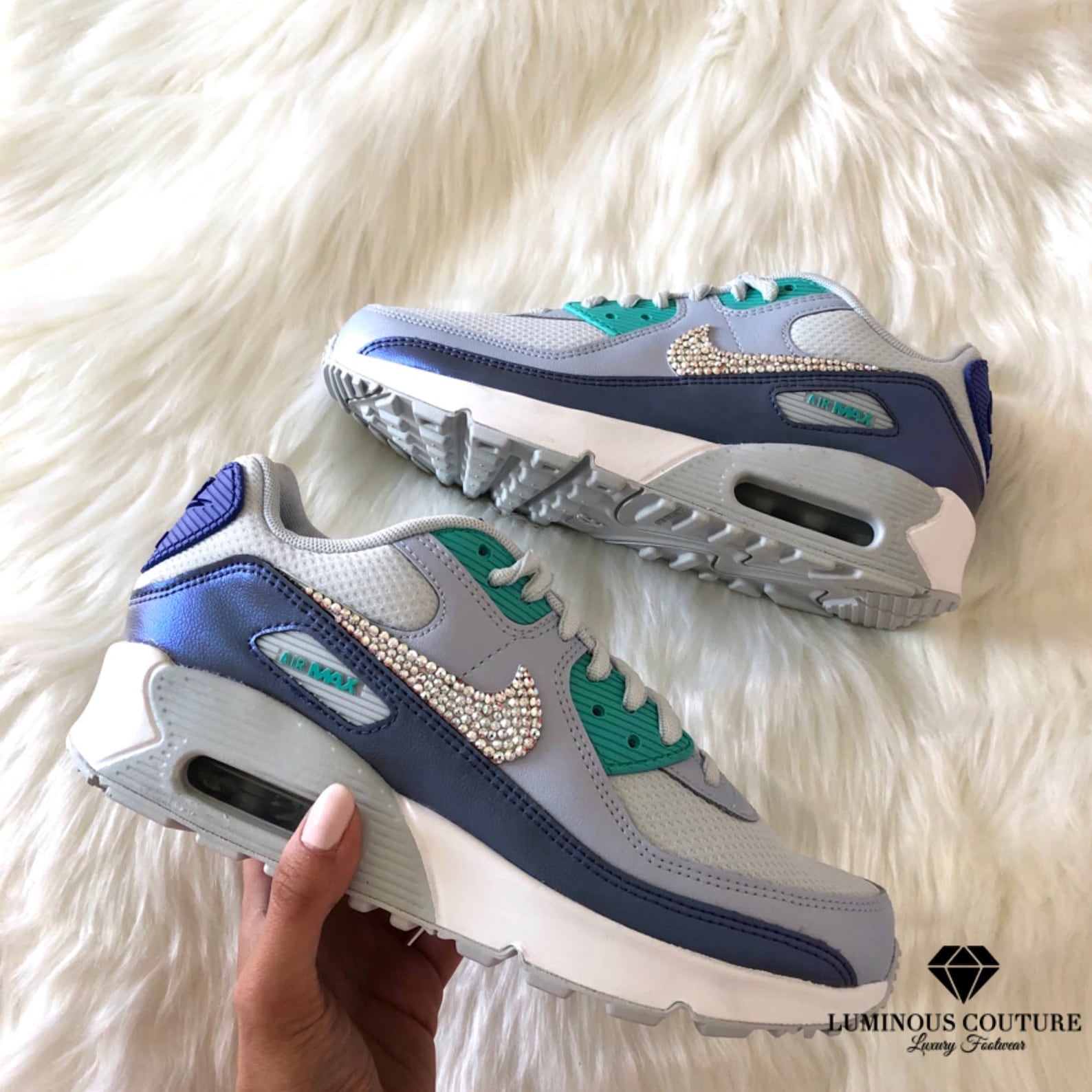 Swarovski® Nike Air Max 90 Custom Shoes Sapphire With AB | Etsy air max swarovski