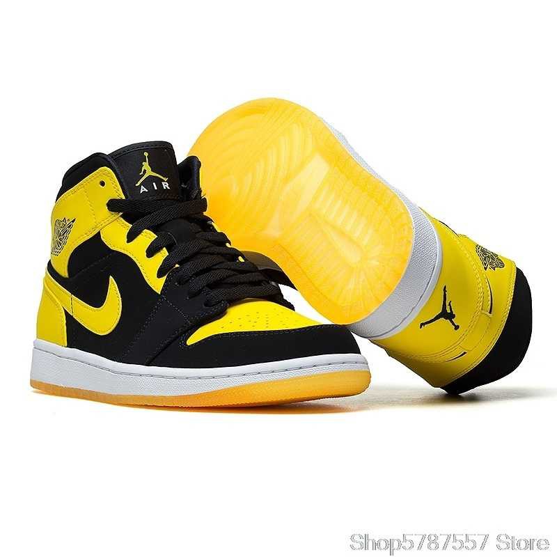 nikeNike-Air Jordan Retro 1 Mid AJ1 Black Yellow Joe Men's Basketball Shoes High-top Comfortable aj1 black yellow