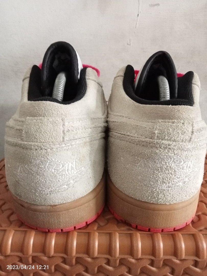 NIKE AIR JORDAN 1 LOW WHITE GUM HYPER PINK, Fesyen Pria, Sepatu , Sneakers di Carousell air jordan 1 low white gum hyper pink