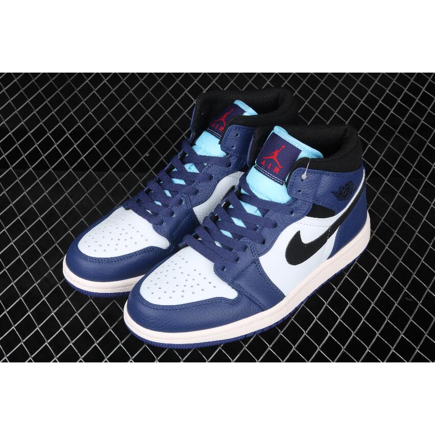 Nike Hot Air Jordan 1 Mid SE Deep Royal Blue Black White 852542-400 t | Shopee Thailand jordan 1 deep royal blue black