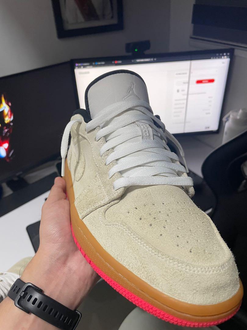 AIR JORDAN 1 LOW WHITE GUM HYPER PINK, Fesyen Pria, Sepatu , Sneakers di Carousell jordan 1 white gum hyper pink