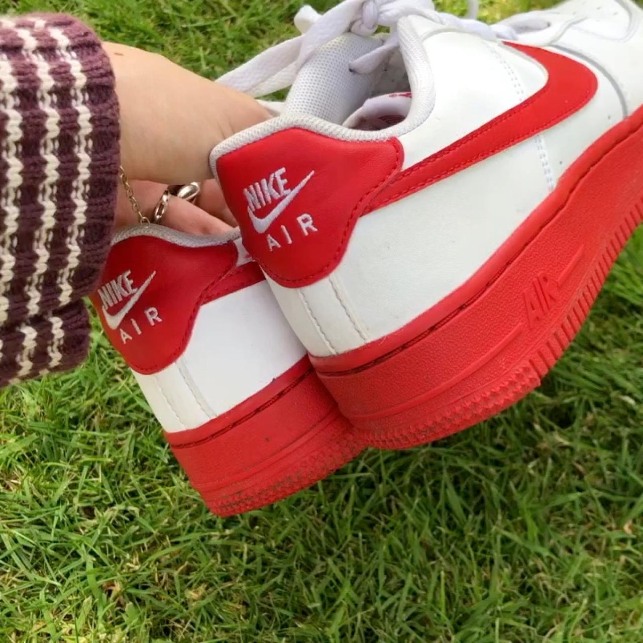 White Nike Air Force 1âs with red detailing ï¸ / UK - Depop white air force 1s near me