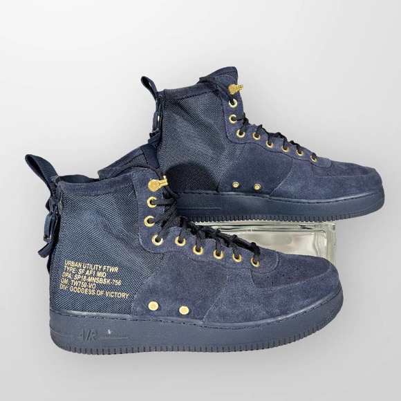 Nike | Shoes | Nike Men 2 Sf Air Force 1 Mid Obsidian Metallic Gold | Poshmark nike sf air force 1 mid obsidian metallic gold