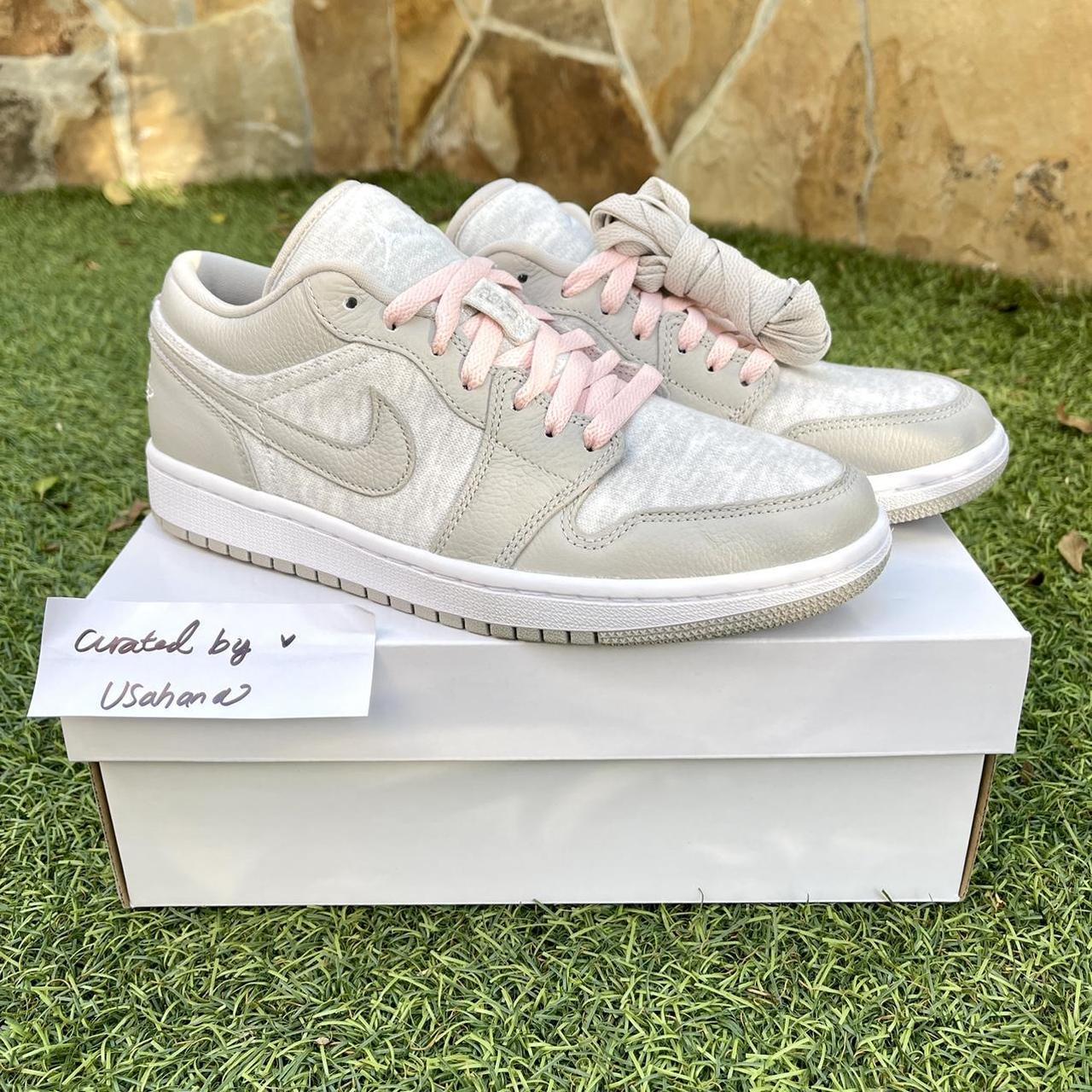 Nike Air Jordan 1 retro low light grey pink shoes - Depop jordan 1 pink and grey